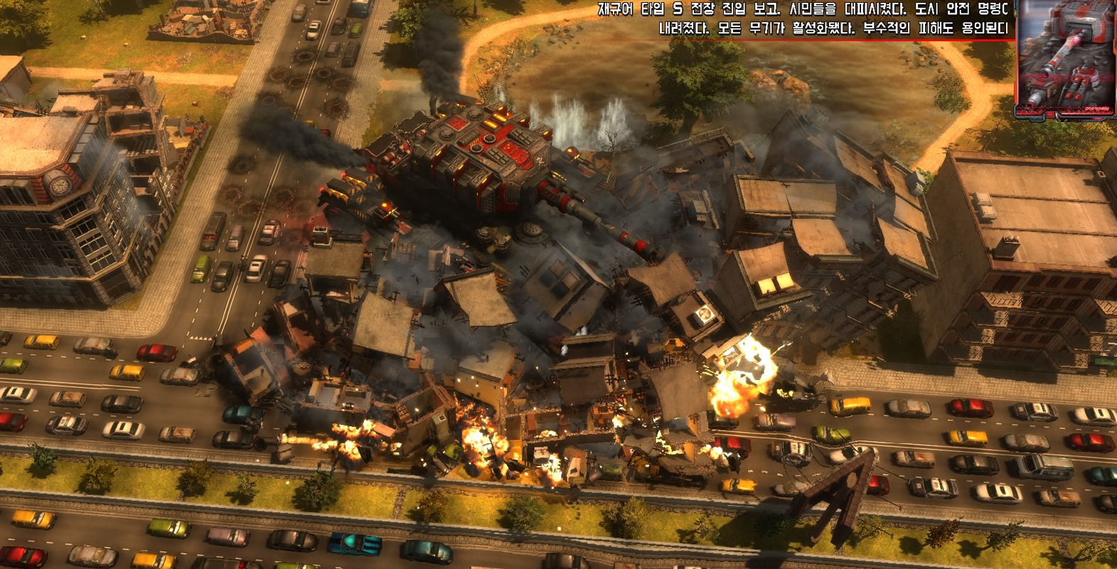 하다 하다 안되니 민간피해를 감수하고 거대 괴물 탱크 재규어를 출격시킨 지구인들 그나저나 저 피해는 다 누가 감당할지. 누가 외계인이고 지성인인지 나중에는 구별이 안 가는 상황이 발생한다.